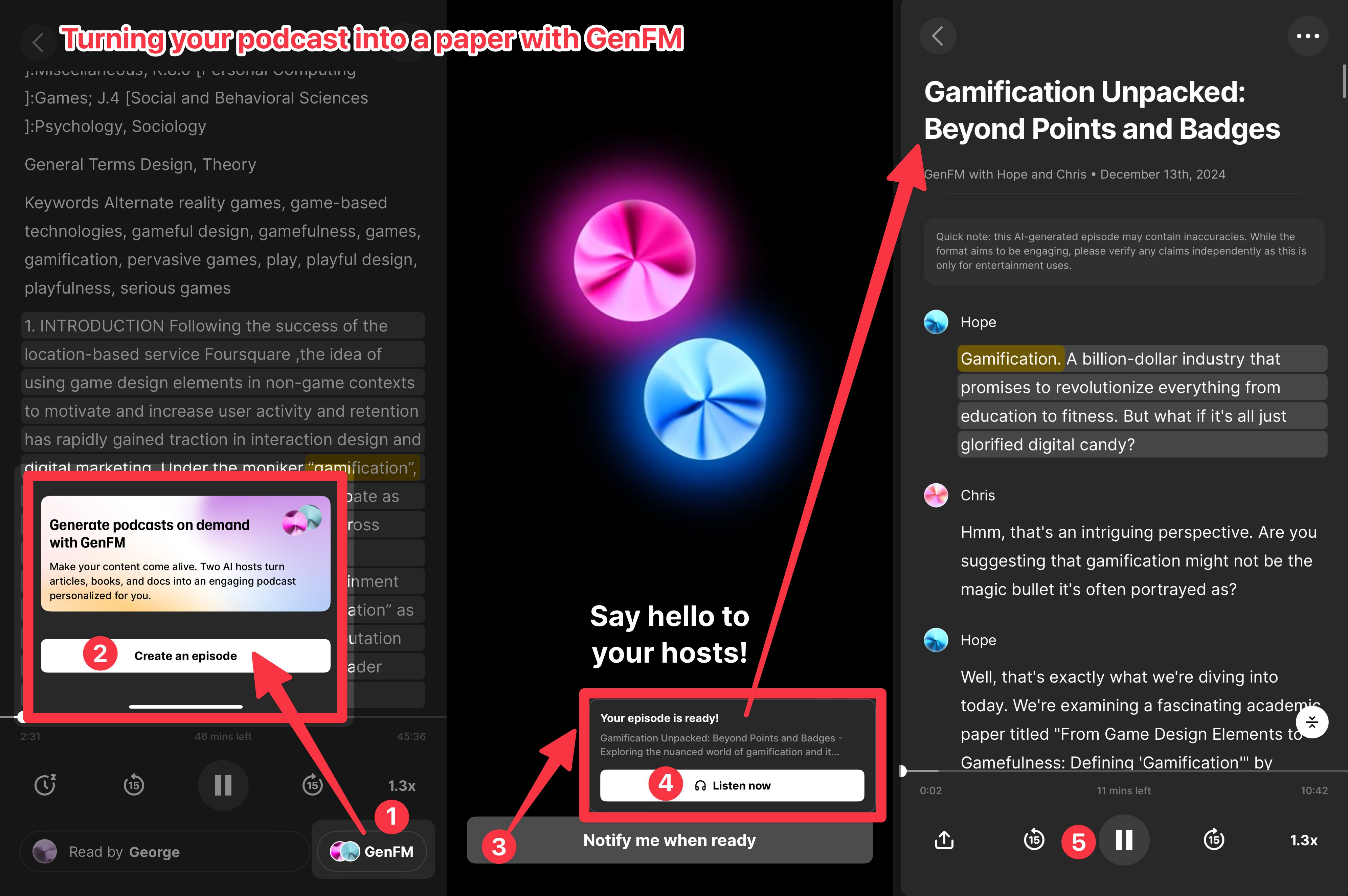 You can download these discussions and share them alongside your papers. Think of it as a pop sci audio abstract that actually engages listeners. I think these use cases are really great for both NotebookLM and GenFM. And both tools are free.
