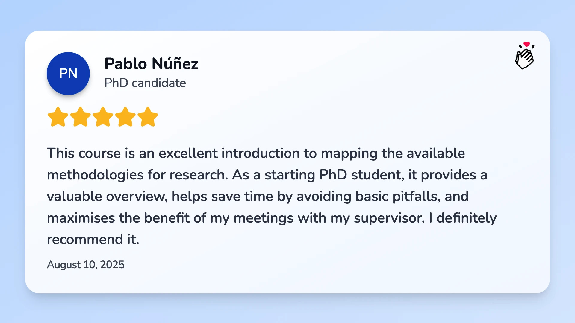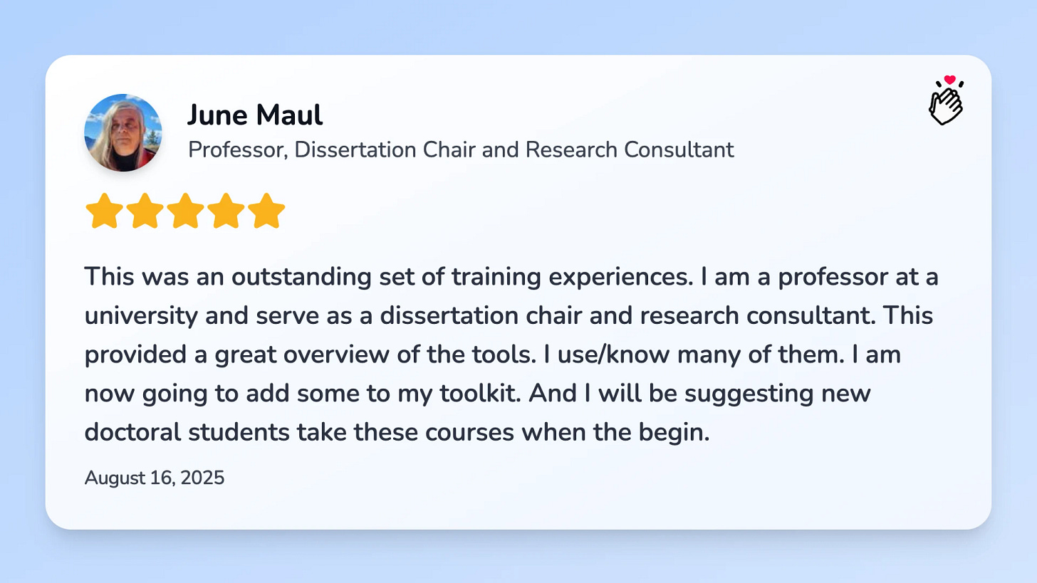 Also, I'm so thankful for anyone leaving testimonials for my products. Just recently, I got this amazing feedback for our PhD Thesis Fast-Track Webinar and my mini e-mail course on research methods (which is 50% off for only two more weeks):